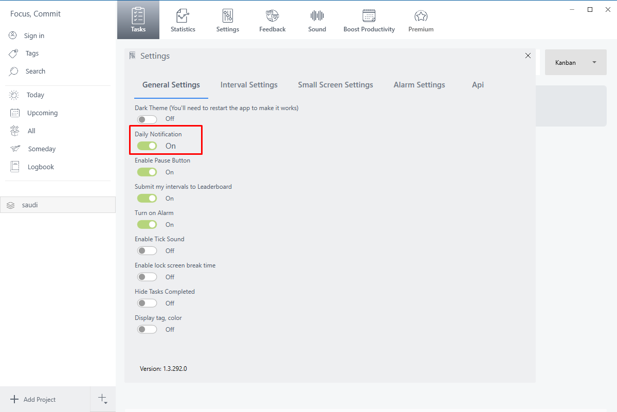 FocusCommit will send a daily notification remind you do interval everyday. If you don’t want it appear, you can disable it here